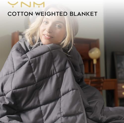 YnM Weighted Blanket, Heavy 100 Percent Oeko-Tex Certified Material with Premium Glass Beads (Dark Grey, 60”x80” 20lbs), Suit for One Person(~190lb) Use on Queen/King Bed