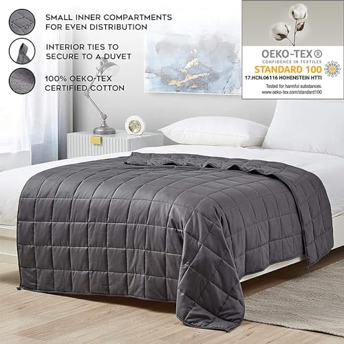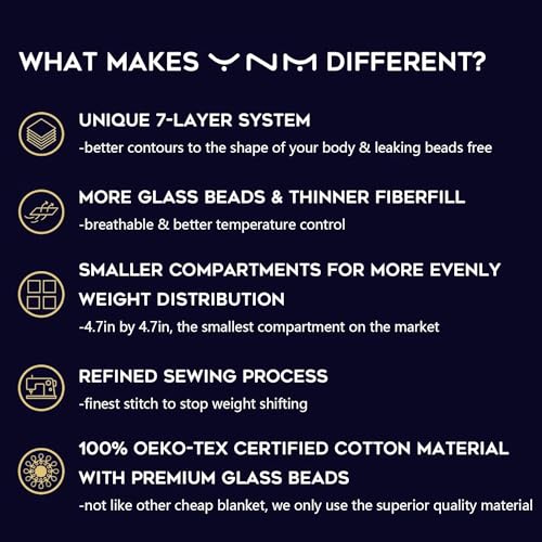 SMALL INNER POCKETS: Sewn inner pockets provide even weight distribution and allow the blanket to conform to your body; To find your ideal size, take 10% of your body weight and add 1 pound