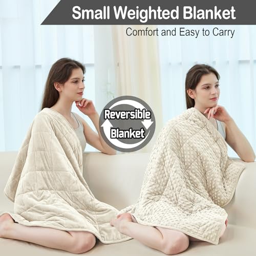 YUSRA Weighted Lap Blanket 2lb, Ultra Soft Small Weighted Blanket for Adults, Travel Weighted Blanket for Sleeping, Portable Crystal Velvet Weighted Throw Blanket for All Season, Ivory, 24 x 32 inch