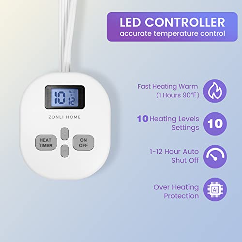 【Fast Heating】With 10 heating levels (86-120°F) and a 1 to 12-hour auto-off timer, the Zonli weighted heated blanket offers intelligent design and customizable warmth. The auto-off feature ensures the blanket powers off automatically for safety and energy efficiency. The constant temperature function ensures you experience continuous and stable warmth throughout use