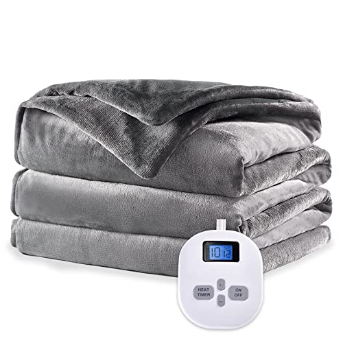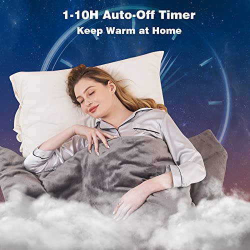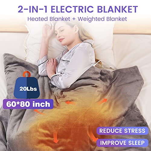 ZonLi Heated Weighted Blanket (60”x80” Queen Size 20lbs) Weighted Electric Blanket for Adults, 10 Heating Levels, Soft Comfort Flannel Fleece Heavy Electric Blanket with Glass Beads, Grey