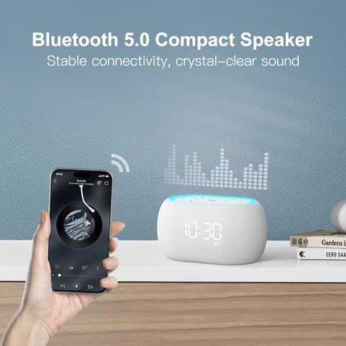 ANJANK White Noise Sound Machine Alarm Clock with Hi-Fi Bluetooth Speaker, 21 Soothing Sounds/7 Night Lights, 0-100% Dimmer/Sleep Timer/Volume Control, Soother for Adults Kids Sleeping, Bedroom, White