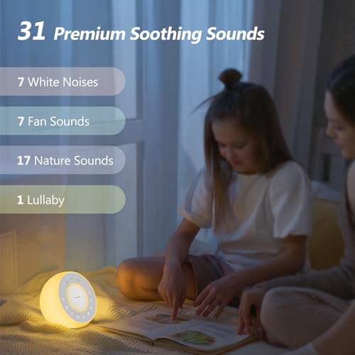 REACHER R2 White Noise Sound Machine for Baby Sleep and Nursery Night Light, 31 Natural Soothing Sounds for Sleeping, White/Pink/Brown Noise, Sound Machine with Light for Adults, Kids