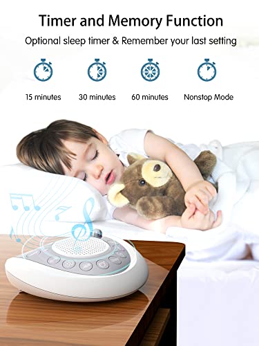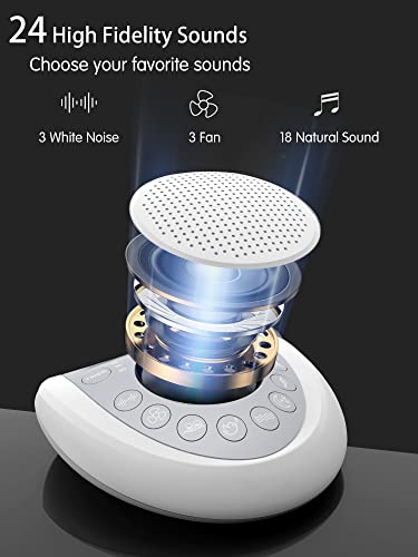 Sound Machine, White Noise Machine for Sleeping Adults Baby Kids, Portable Sound Therapy with 24 Soothing Sounds, Timer&Memory Function, Plug in or Battery Operated, 5 Volume Levels, USB Charge Port