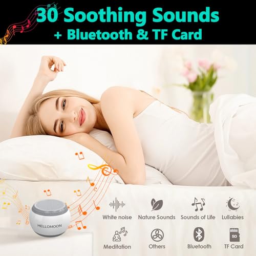 White Noise Sound Machine, Hellomoon Portable Sound Machine with 30 Soothing Sounds for Adults Kids Baby Sleeping, Timer, Bluetooth&TF Card, White Noise Machine for Office Privacy Travel Sound Therapy