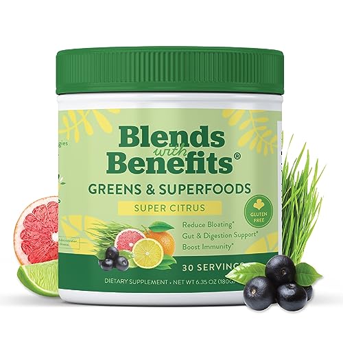 360 Nutrition Blends with Benefits Super Greens Powder w/Probiotics, Digestive Enzymes, Sugar & Gluten Free, Plant Based Superfood Drink Mix for Gut Health, Bloating, Immunity, Overall Health, 6.35 oz