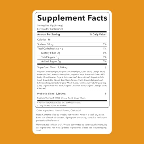 INCREASE YOUR VEGGIE INTAKE: Loaded with 20 different vegetables, grasses, fruits, and seaweed, it’s all your green powerhouse superfoods in just one serving. These are the superfoods you need but don’t typically consume, like organic chlorella and spirulina.