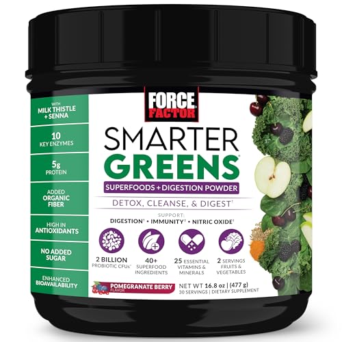 FORCE FACTOR Smarter Greens Superfoods Powder to Support Digestion, Gut Health, Bloating, Greens Powder with Probiotics, Prebiotics, Digestive Enzymes, & Adaptogens, Pomegranate Berry, 30 Servings