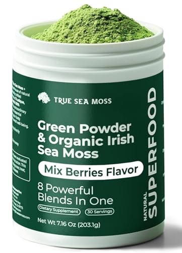 Ocean-Sourced Vitality: Harness the synergistic benefits of spirulina and sea moss in our green superfood blend, designed to enhance gut health and overall vitality.