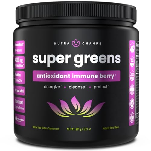 Super Greens Powder Premium Antioxidant Superfood | Organic Greens Fruit and Veggie Vegan Supplement | 40+ Greens and Superfoods Including Wheatgrass & Spirulina | Probiotic Powder Greens, Sweet Berry
