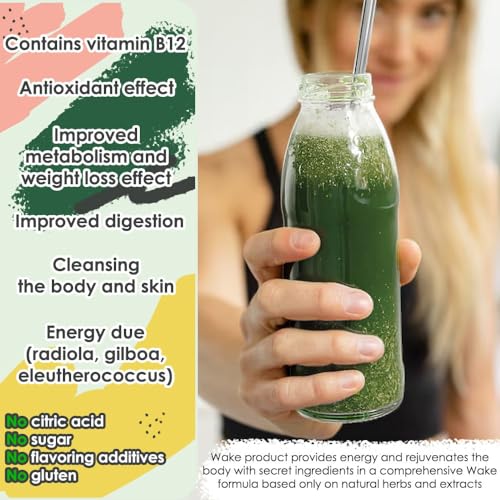 WAKE Super Greens is a unique powder for drink, juice or smoothie based on fresh berries, herbs, whole vegetables, green whole grasses and grass juice enhanced with vitamins A, C, D, E, K, B9, B7, B12, as well as calcium, iron, magnesium, sodium potassium. All the best what nature gives is packed in one properly balanced gluten-free, no sugar added, plant based kosher Non-GMO and vegan supplement.