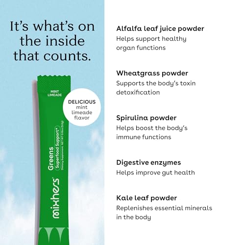Delicious, Versatile Daily Greens Powder: Simply mix with 8-12 oz of water and enjoy, or mix with other drinks, smoothies, or Mixhers products