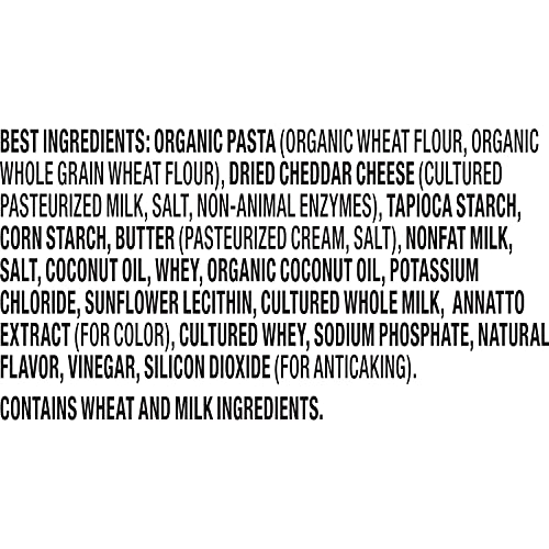 Adult and kids mac and cheese made with real cheese from cows not treated with rBST and no artificial flavors or synthetic colors