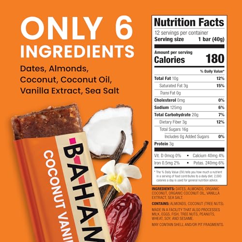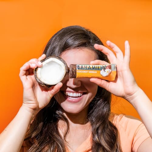 Bahamii Date and Almond Bars, Coconut Vanilla – Healthy Snacks, Non GMO, Gluten-Free – Plant-Based, Kosher, No Added Sugar – 12 Count