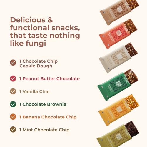 Organic Functional Mushroom Protein Bars | Made in USA | Full Dose (1500mg) Lions Mane, Chaga, Reishi & Cordyceps Bars | Vegan Protein Bars, Superfoods Protein Bars | 6 Bars Sampler Pack