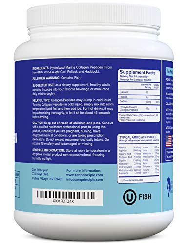 Zen Principle Marine Collagen Peptides Powder 1.5 lb. Wild-Caught Fish, Non-GMO. Supports Healthy Skin, Hair, Joints and Bones.Hydrolyzed Type 1 & 3 Protein. Amino Acids.Unflavored, Easy to Mix.