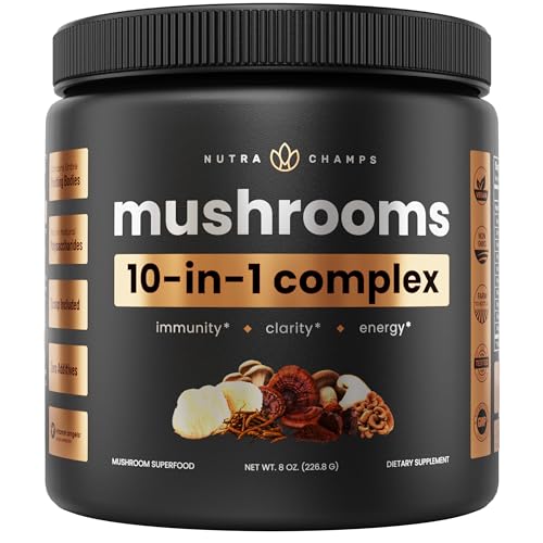 10-in-1 Complex – Including Lions Mane, Reishi, Shiitake, Chaga, Turkey Tail, Cordyceps, Maitake & more, NutraChamps’ easy-to-use functional mushroom blend helps support cognitive health & overall wellbeing.