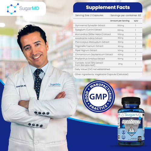 SugarMD Dr. Ergin’s GlucoDefense Glucose Support Supplement – Enjoy Healthy Glucose Level & Healthy Metabolism – Glucose Optimizer with 10 Strong Herbal Ingredients – 120 Capsules (30-Day Supply)