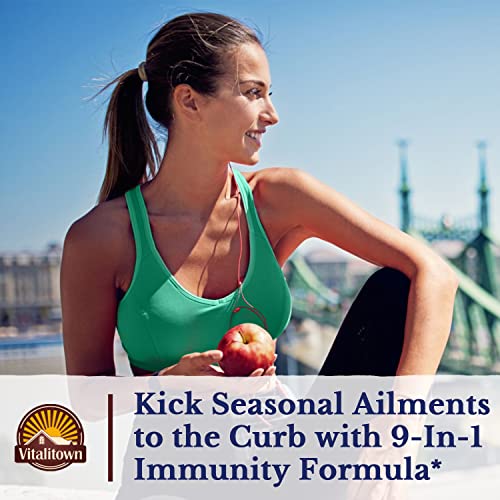 VITALITOWN Immune Support Supplement, with Elderberry, Vitamin C, Zinc, D3 6000IU, Selenium, Ginger, Echinacea, Garlic & Black Pepper, 9-in-1 Immunity, 60 Caps