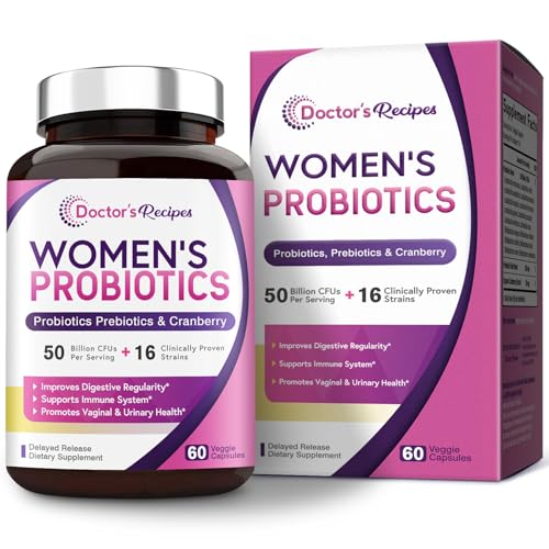 Doctor’s Recipes Women’s Probiotic, 60 Caps 50 Billion CFU 16 Strains, with Organic Cranberry, Digestive Immune Vaginal & Urinary Health, Shelf Stable, Delayed Release, No Soy Gluten Dairy