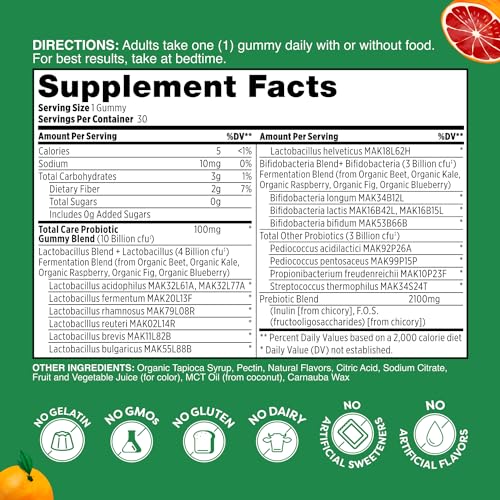 Total Care Probiotic + Prebiotic + Postbiotic Gummies – Blood Orange 30ct