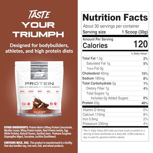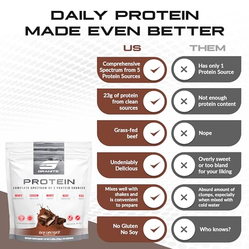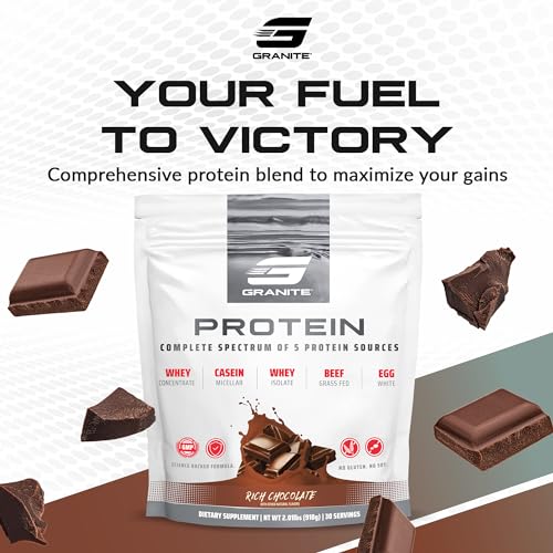 Granite Protein Powder | Whey Isolate & Concentrate| Casein for Lean Muscle Building & Workout Recovery | 30 Servings | Egg & Grass Fed Protein | 23g Protein from 5 Sources | Chocolate Flavor