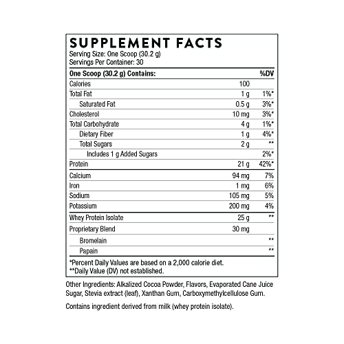 Absorbable Protein: 21 grams of bioavailable whey protein isolate with flavors and sweeteners derived from natural sources