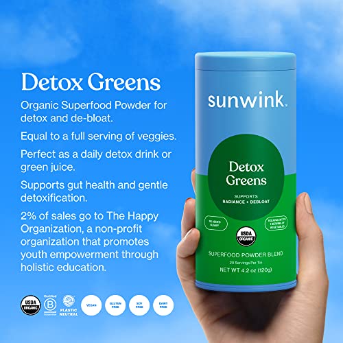 Sunwink Detox Powdered Greens – Organic Greens SuperFood Powder for Debloat – Super Greens Powder w/Celery, Dandelion, Spirulina – Daily Greens Powder for Gentle Detox – 4.2 oz (20 Servings)