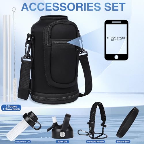 Delightful Combo Supreme – Buy a 64 oz insulated water bottle, get 9 accessories (1 x fruit infuser lid, 1 x straw lid, 1 x survival paracord, 1 x carrying pouch, 1 x shoulder strap, 1 x protective cup mat, 2 x straws, 1 x straw brush). CEVISUME provide a lifetime warranty and 7X24H customer service