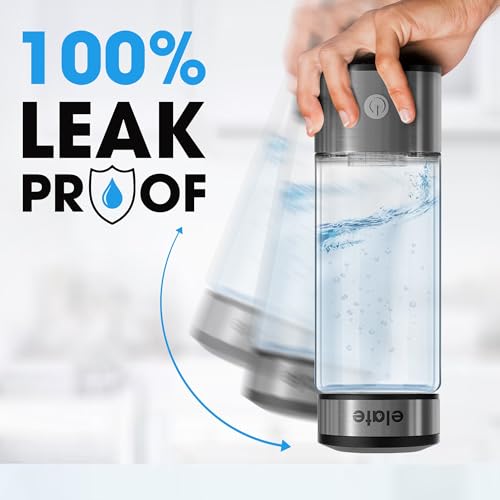 SLEEK MINIMAL DESIGN: The body of the ELATE hydrogen water bottle is made of food-grade borosilicate glass and can hold up to 14 ounces of water. We have added an additional silicone ring around both openings of the bottle to ensure your new hydrogen water bottle is FULLY LEAK-PROOF. Our sleek but effective SPE/PEM technology allows you to supercharge your water for up to 20 cycles on one charge!