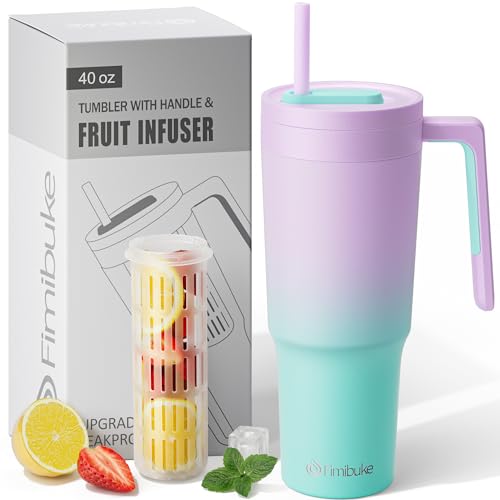 Fimibuke 40 oz Tumbler with Handle & Fruit Infuser, Stainless Steel Vacuum Insulated Cup with Lid & Straw, Water Infusion Bottle Cupholder Friendly Travel Mug Mothers Day Gifts for Mom Grandma Auntie