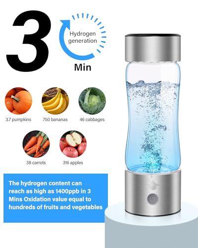 Advanced Electrolysis Technology: Unlike other hydrogen water bottles on Amazon that experience reduced hydrogen ion concentration when with purified water, our hydrogen water bottle utilizes state-of-the-art electrolysis technology. It can effectively generate hydrogen from any drinking water, including hot water, maintain a stable hydrogen ion concentration of 1200-1400 ppb, and remain tasteless. Please clean the hydrogen water generator one to two times before use. Additionally, avoid pouring other liquids into the bottle.