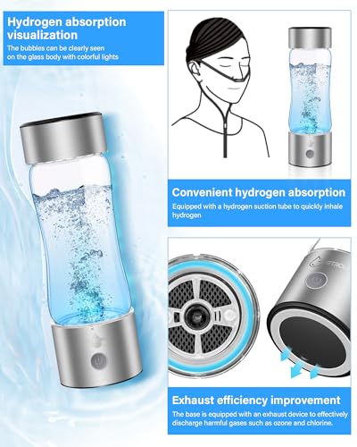 Easy to Use and Clean: The 2-in-1 design of the hydro health hydrogen water bottle makes it effortless to enjoy hydrogen-rich water. Simply pour 60%-80% of water into the bottle, press lightly, and the light at the bottom will illuminate as hydrogen gas is generated from the water. Additionally, the bottle is equipped with three extra nasal tubes that can be inserted into the lid interface if you prefer to directly inhale hydrogen gas. Both the bottom and top are easily twisted off for convenient cleaning.