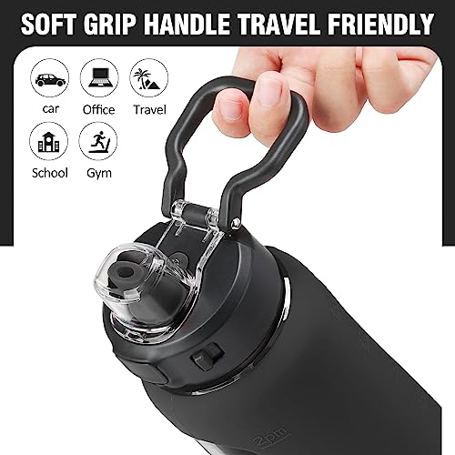 LOCKING LID & CARRY LOOP – The locking lid ensures no spills while on the go and prevents accidental leakage even the water bottle tip over or be laid on its side. The lid flips open at the push of a button. The carry loop is made from a durable and flexible material that can withstand the weight of the filled bottle and the stress of carrying. Leak-proof lid, soft silicone straw mouth piece and travel friendly soft grip hand.