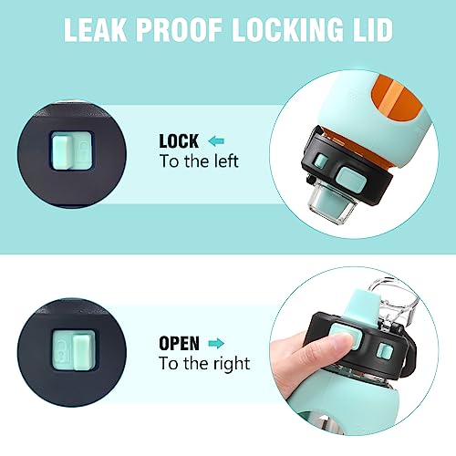 LOCKING LID & CARRY LOOP – The locking lid ensures no spills while on the go and prevents accidental leakage even the water bottle tip over or be laid on its side. The lid flips open at the push of a button. The carry loop is made from a durable and flexible material that can withstand the weight of the filled bottle and the stress of carrying. Leak-proof lid, soft silicone straw mouth piece and travel friendly soft grip hand.