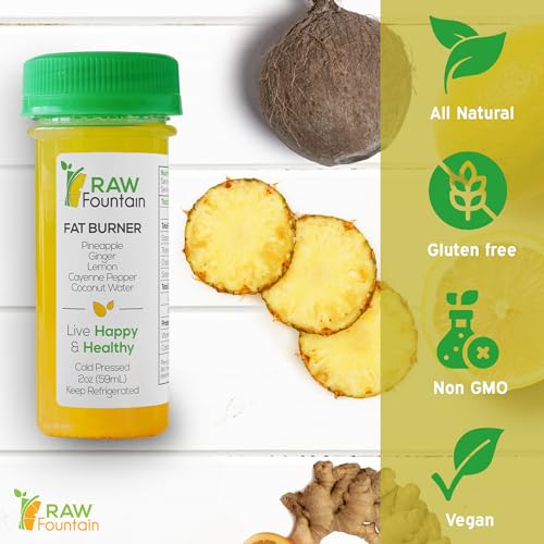 20 PACK- Each shot holds 2 ounces of our perfectly blended Fat Burner recipe. Enjoy pineapple, ginger, cayenne pepper, lemon, and coconut water benefits with a great taste.