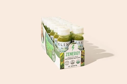 Elixir Shots Zenergy Shot (12 Pack) Zenergy Wellness Shot with 100% Organic Ingredients, Matcha, Grapefruit, Peppermint, Apple Cider Vinegar – No Added Sugars or Artificial Ingredients