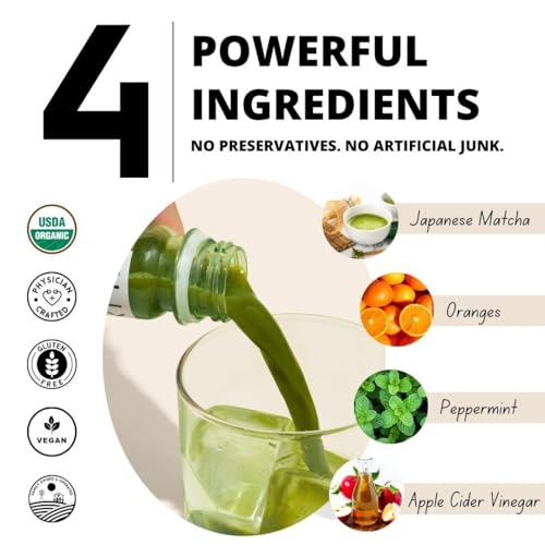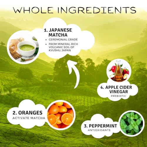 🍵 SUPER POTENT – We pack this wellness shot with Organic Japanese Ceremonial grade Matcha to give you the energy and focus you need. We also add Organic grapefruit juice, Organic Apple Cider Vinegar and Organic Peppermint.