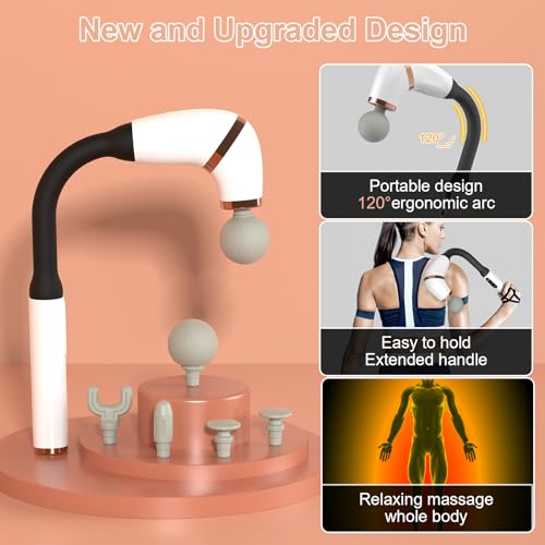 [Upgraded Extended Handle and 120° U Design]:Our massage gun features an extra-long handle and ergonomic 120° U-shaped design, breaking the limitations of human arm length and can fit your spine and waist naturally. Unlike traditional massage guns, you can achieve full-body relaxation without bending over or asking for help, allowing you to easily reach other hard-to-reach areas such as your back, shoulders, waist, etc. This will be an essential massager for anyone seeking muscle relaxation.