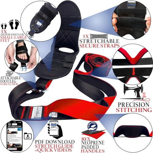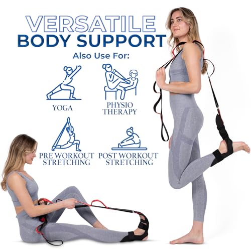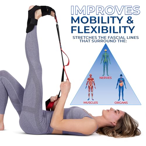 Stretching Strap with loops and attachable foot, leg stretcher, fascia stretcher used for physical therapy, yoga, flex strap, exercise, Plantar Fasciitis, Pain Relief, recovery and increasing mobility