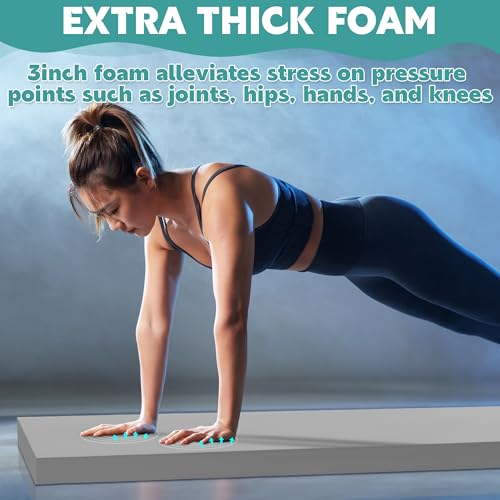 Perfect Size: Exercise mat size with 72”L x 24” W, Thickness: 3 inch, suitable for all purpose fitness mat in the studio or at home.