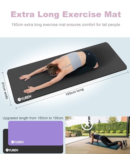 Yoga Mat for Tall People: 195cm extra long 61cm wide exercise mat ensures comfort for tall people. Made of NBR material which is soft, flexible and non-toxic, it’s a great pick for your daily exercise.